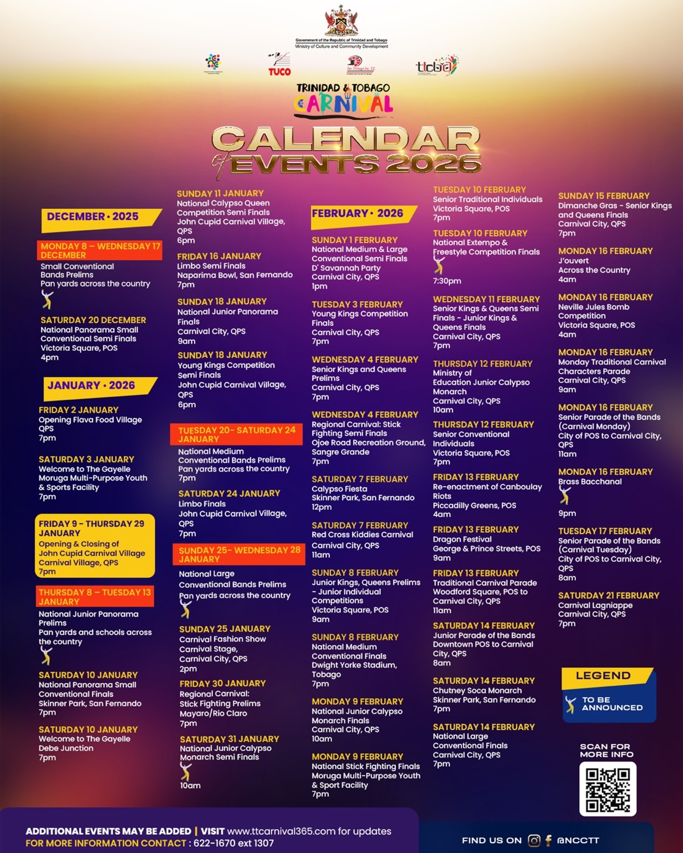 TRINIDAD: February 16th & 17th, 2026 | TOBAGO: TBD
